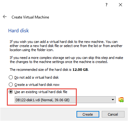 C:\Program Files\Oracle\VirtualBox>VBOXMANAGE.EXE internalcommands sethduuid “F:\12.2DB_OracleRestart\DB122-disk1.vdi”