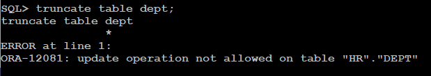 I’m connecting as user HR ( to a 19c pluggable database). I have a small table “DEPT”: