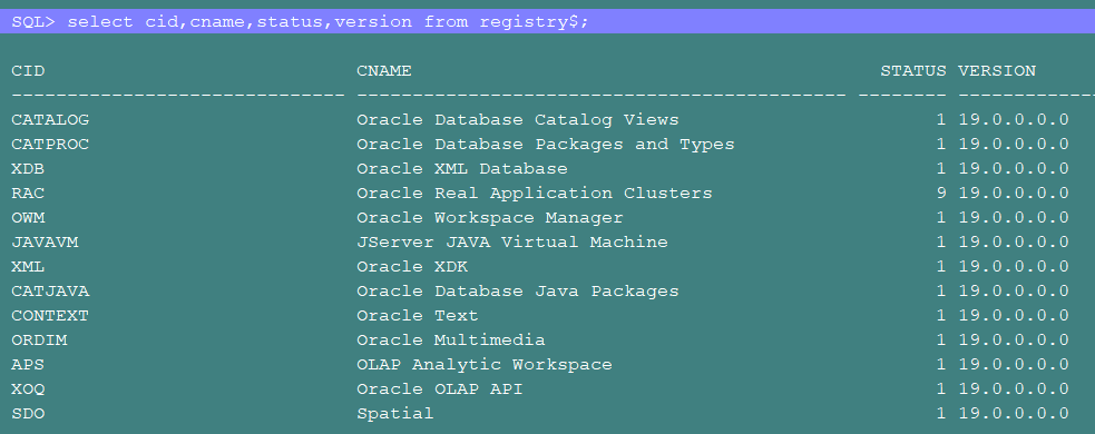 Initially,I started the database in “upgrade” mode, then I checked the status of the installed components: