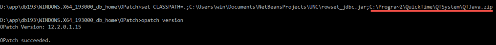 Remove “C:\Program Files (x86)\QuickTime\QTSystem\QTJava.zip” from the CLASSPATH, we don’t need this with Oracle at all.