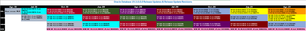 Following is a list of all RU (Release Updates) and RUR (Release Update Revisions) issued for the Oracle Database 19c (19.3) since Apr-2019 till today 24-Jun-2021.