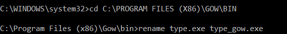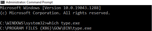 I know that “type” is an internal windows command (there is no type.exe), but when I issued the following command: