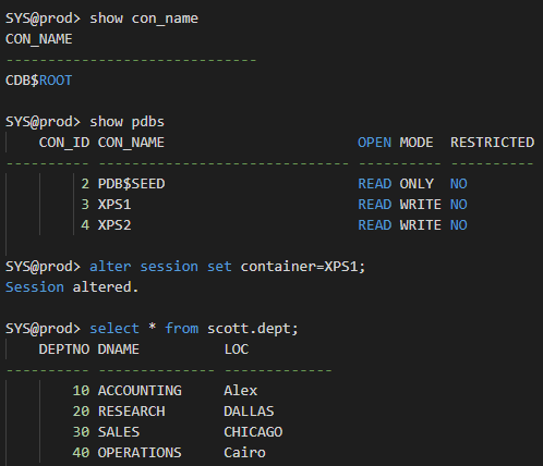 Let us switch to the PDB using the SYS user: