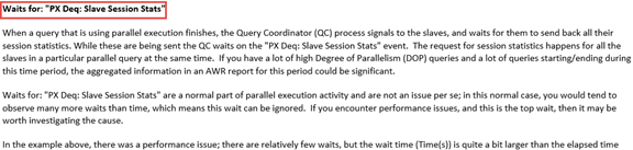 So, what is “PX Deq: Slave Session Stats”? and why it is one of the top wait events?