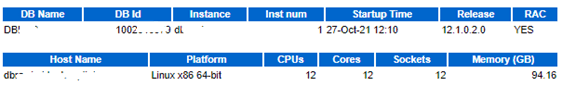 Oracle Database 12c R1 (12.1.0.2) on Linux with Oracle RAC (two nodes).