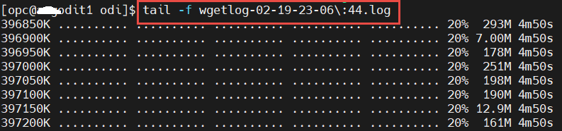 To monitor the download progress, open another session and tail the log file that is generated at the same download directory: