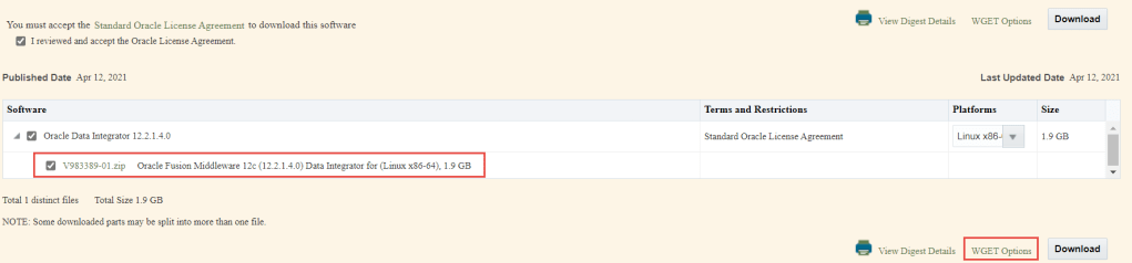 Login to the edlivery.oracle.com and select the required software to download: