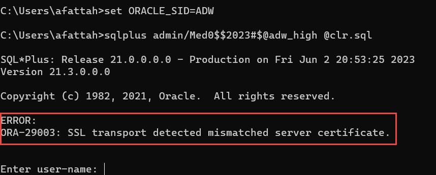 Couple of days back, I started to get the following error, whenever I tried to connect to any Oracle Autonomous Database Cloud Service from SQL*Plus on my laptop (which was usually working fine for years):