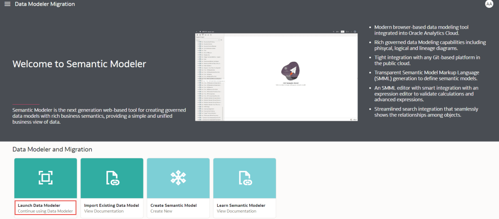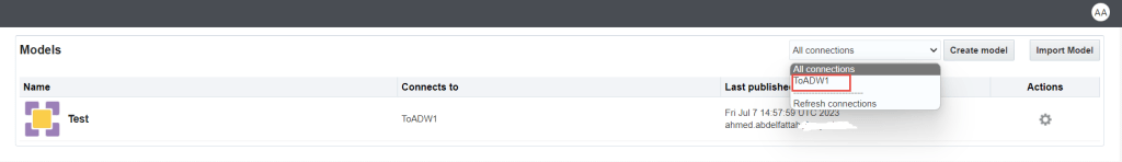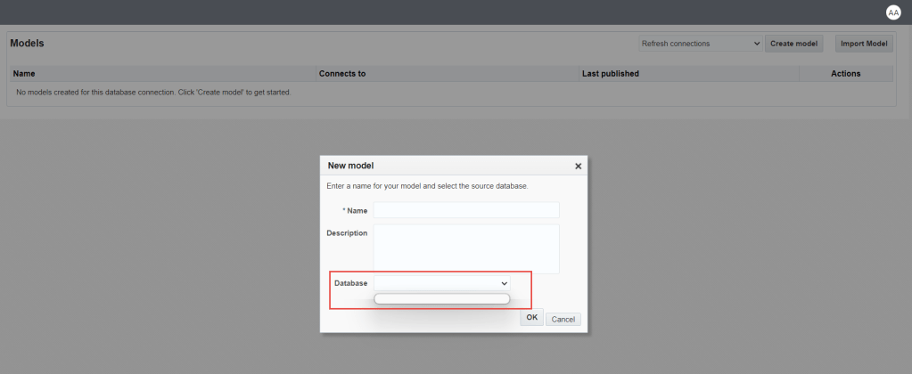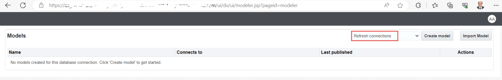This connection is visible now from the Data Modeler, and I can successfully create a new data model: