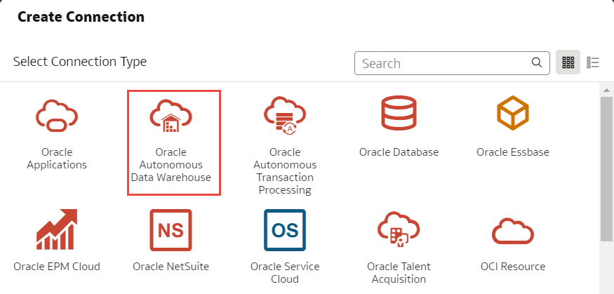 Then I selected the connection type as “Oracle Autonomous Data Warehouse”: