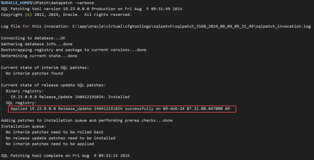 Although, I know that datapatch is running as part of the upgrade process, as it is clear from the following upgrade status report: