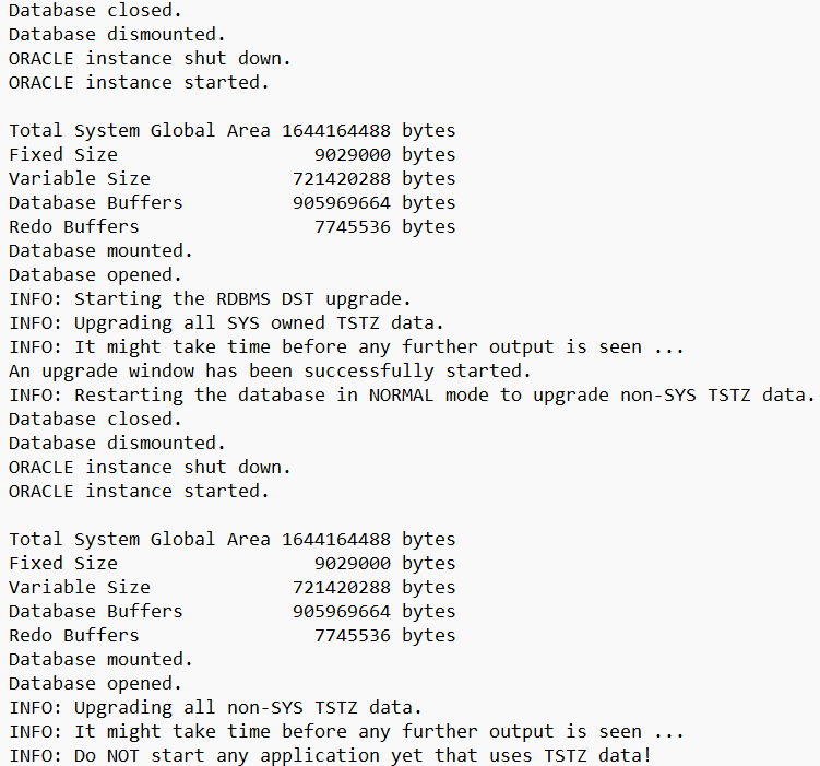 After that I started the database successfully ( I tested to stop/start it many times successfully away from the utltz_upg_apply script)