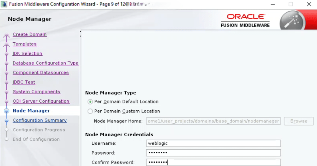 | Agent Home | /u01/oracle/product/Middleware/Oracle_Home1/user_projects/domains/base_domain |