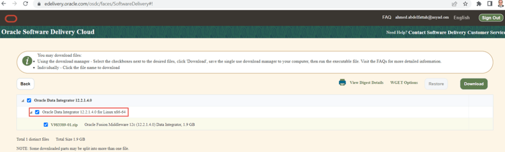 (Download the file named V983389-01.zip and extract it to obtain the fmw_12.2.1.4.0_odi.jar file (size is about 1.9 GB)